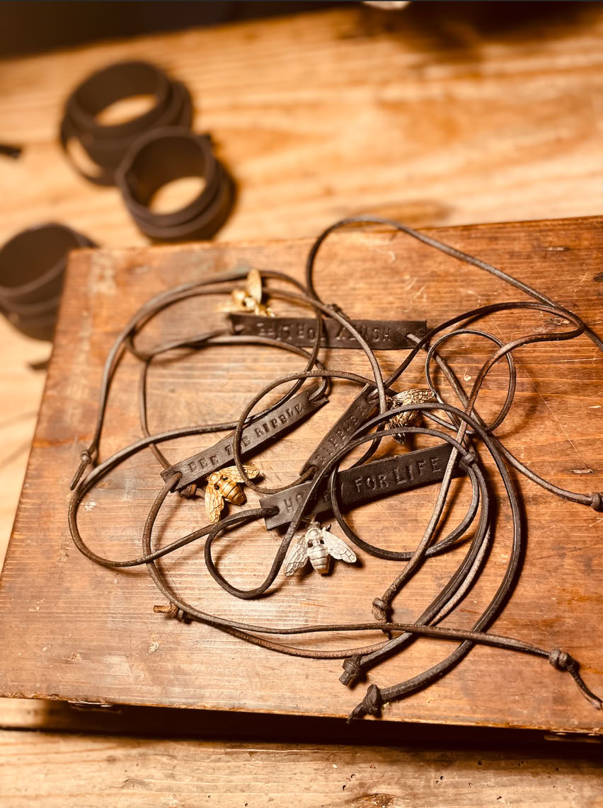 With so much talent surrounding us, Lady Ripple is honoured to collaborate with Dimitri Villoresi and the unique creations he has interjected into our new leather unisex bee jewellery collection.