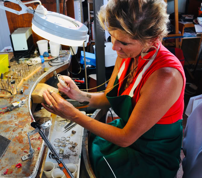 A conversation with intrepid creative Marina Calamai, who is both artist, artisan and jeweller, leads you down a path filled with fresh perceptions, designs diagrams for her latest projects, historical research and contemporary flair. She is the ripple effect in motion as her curiosity is an endless energetic tonic that both powers and implements her art. Although her primal inspiration is usually to be found within nature and the ecological world, Marina has also been deeply influenced by the master Florentine artisans whose workshops were a daily feature of her childhood in Santo Spirito, the Oltrano district famous for its hand-crafted artisan tradition dating back to Renaissance times.